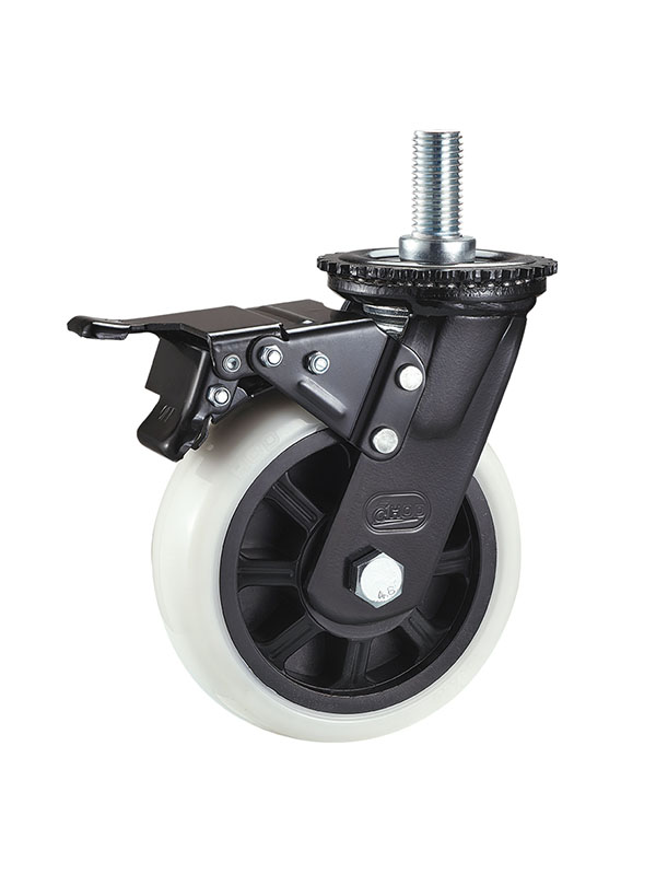 72係列(liè)-4寸絲杆(gǎn)雙刹雙軸(zhóu)承耐磨白色TPE輪(黑漆)
