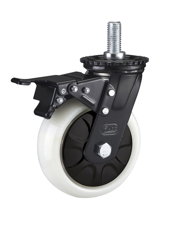 5. 鎖(suǒ)定機製:超重型腳(jiǎo)輪通常(cháng)設有刹車或鎖定機製,以便固定位置,防止非預期滾動。